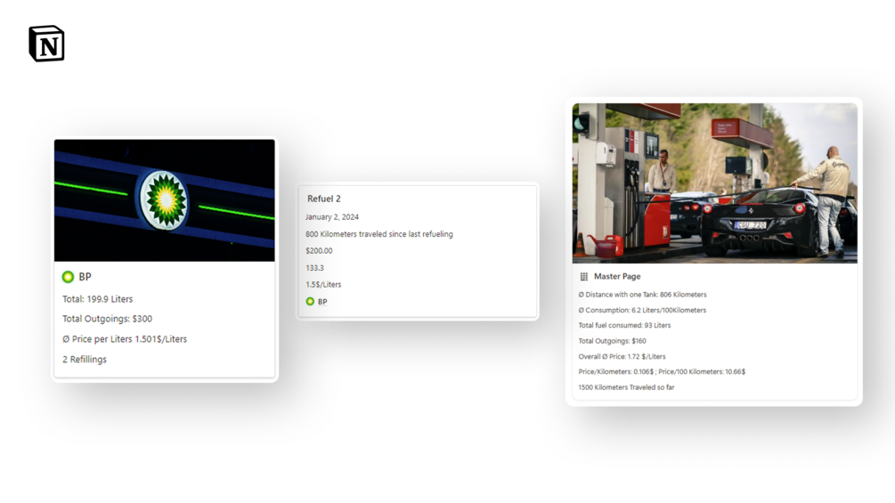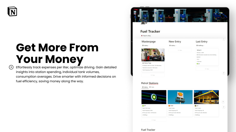 • Expense Monitoring: Track spending on fuel per refill, gaining a detailed overview of expenses at different stations.