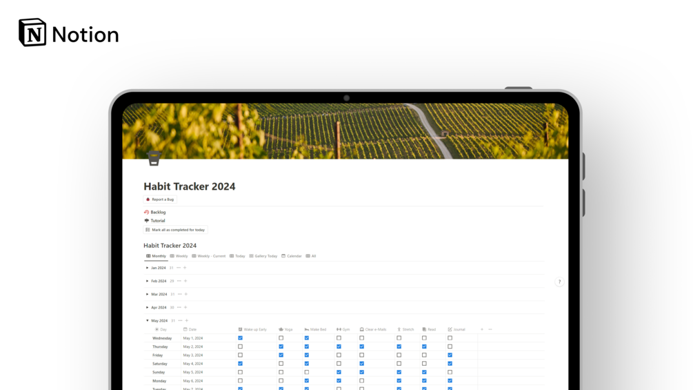 Inside the Habit Tracker 2024, you'll discover the following features: