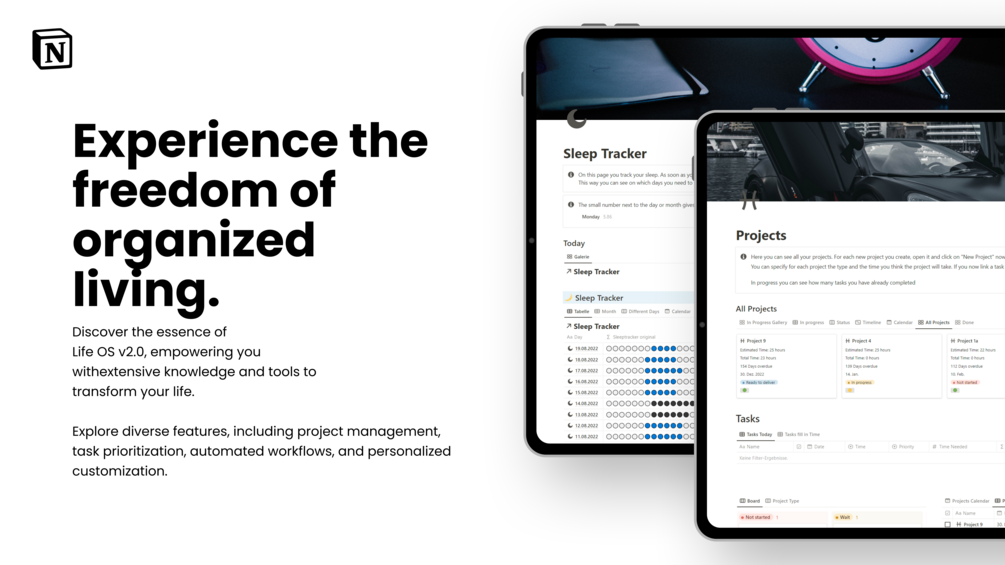 A life OS is a digital operating system designed to help users stay organized and maximize productivity. It provides users with a structured framework for planning and tracking tasks, goals, and objectives, as well as tools for staying organized and reducing stress. Additionally, it offers a visual representation of progress, helping users stay motivated and stay on top of their goals. The Life OS v2.0 is a new version of the life os v1.0 with better features and improved workflows and systems
