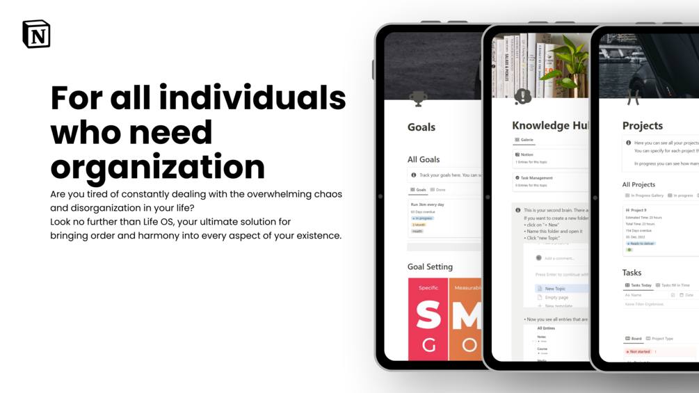 It provides a comprehensive and organized platform for tracking and managing tasks, allowing users to prioritize and focus on their goals. Since the Life OS is not limited, you can create new databases as you like or connect them to already purchased templates
