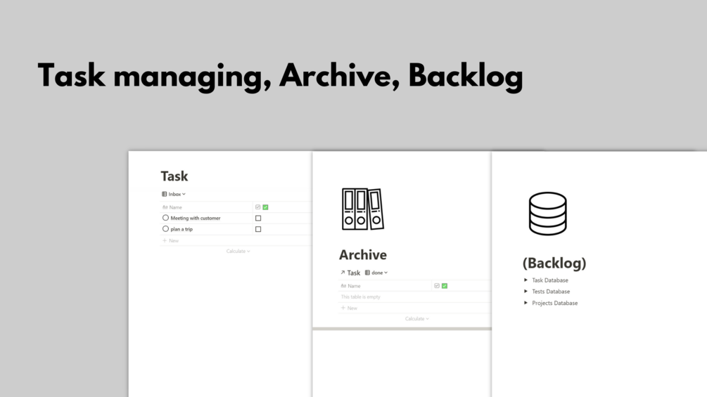 - a backlog page where the main databases are stored