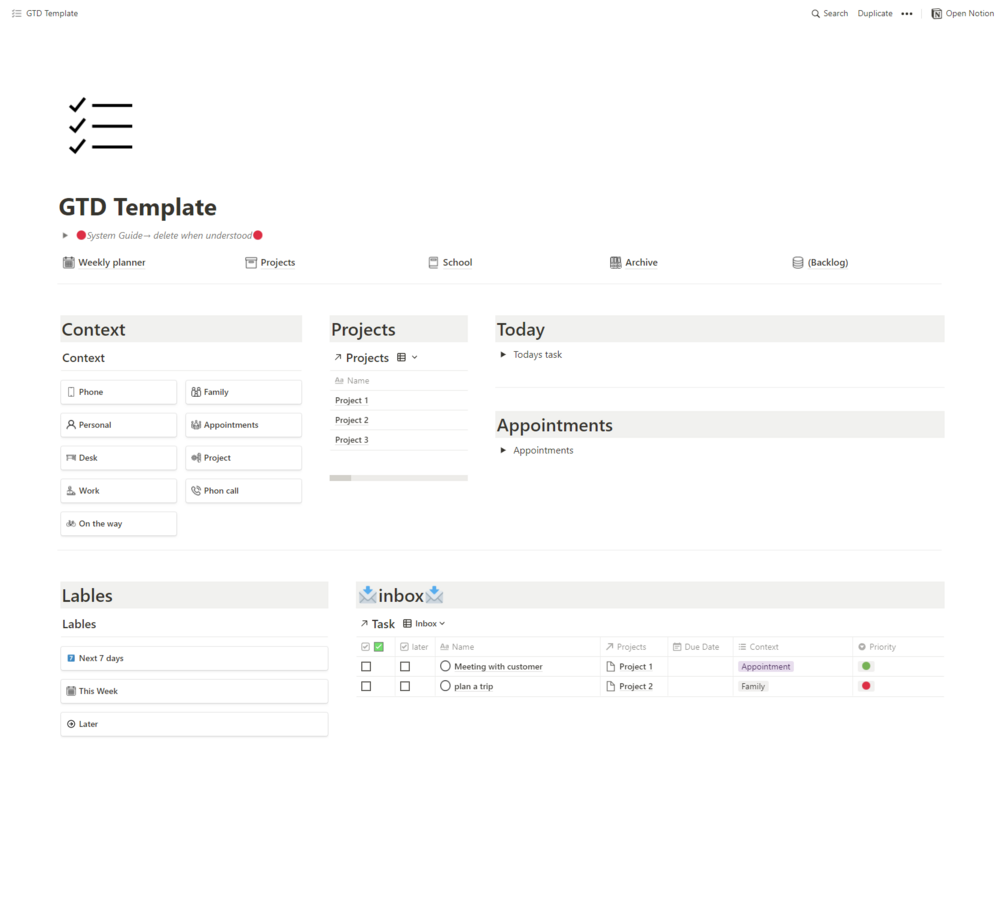 GTD System Notion Template Download