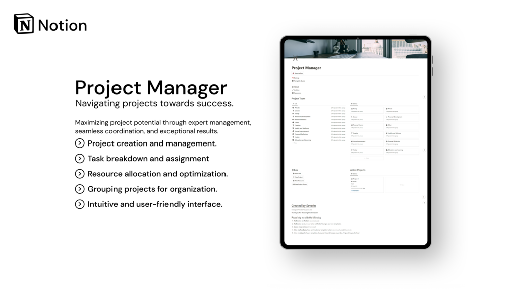 Start using this Project Manager Template today and enjoy the benefits of streamlined project management, efficient task tracking, and enhanced project organization. Take control of your projects and achieve success with ease.